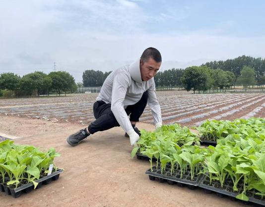 参训人员在实训中移栽搬运烟苗