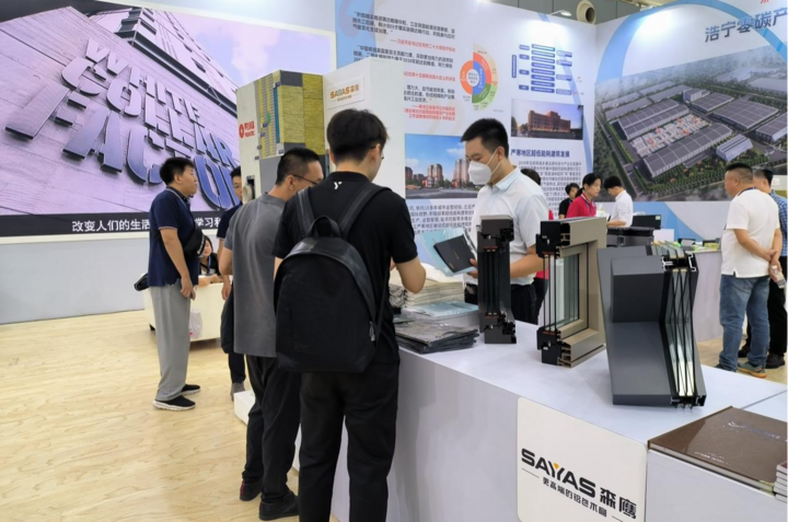 ——这里有超低能耗的践行者。哈尔滨森鹰窗业展示的P120铝包木窗主力产品,适用于目前国内超低能耗建筑使用。整窗的传热系数低于0.8W/(㎡·K),已完成近200个超低能耗建筑项目,成窗面积达到50万平方米左右。