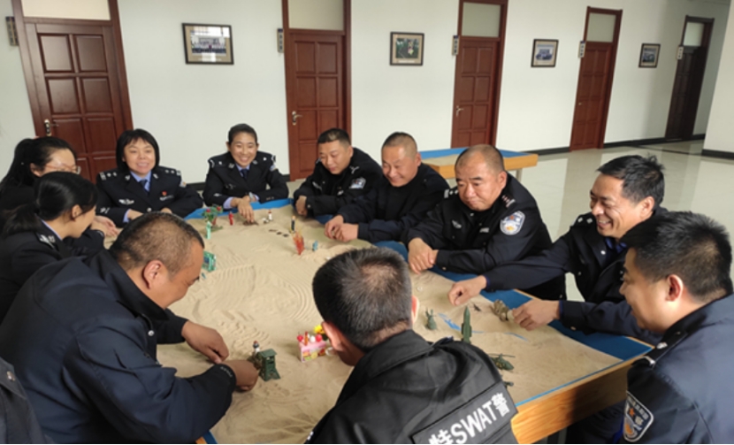 哈尔滨市公安局呼兰分局依托党建学习、廉政教育、战术训练于一体的“三地合一”硬件优势,不断加大投入力度,设置了功能齐全、配置丰富的心理活动室。在房间内,摆放了足以容纳10人共同使用的大型心理沙盘,周围布置了与公安工作相关的迷你摆件和形象展板。以“润物无声”方式营造减压氛围,提升职业认同感与荣誉感。