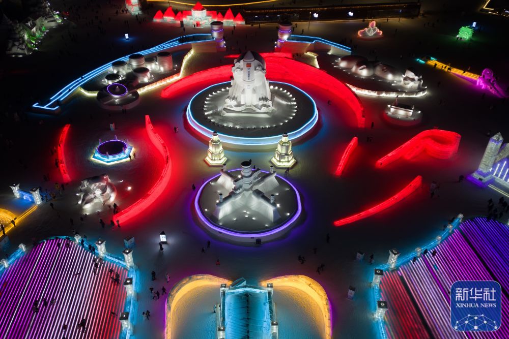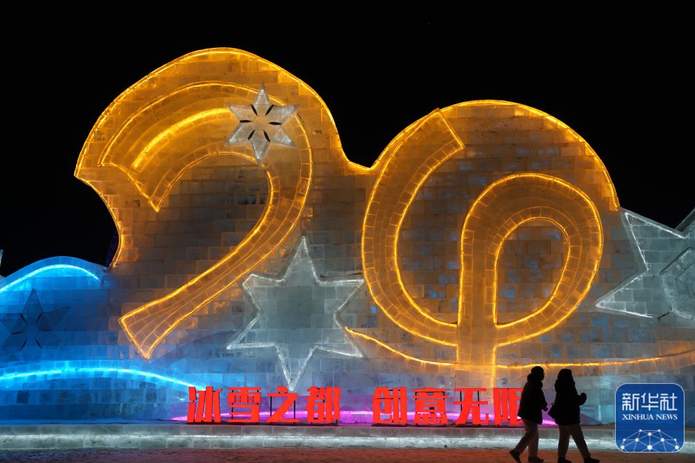 2021年12月31日,哈尔滨冰雪大世界夜景。新华社记者张涛摄