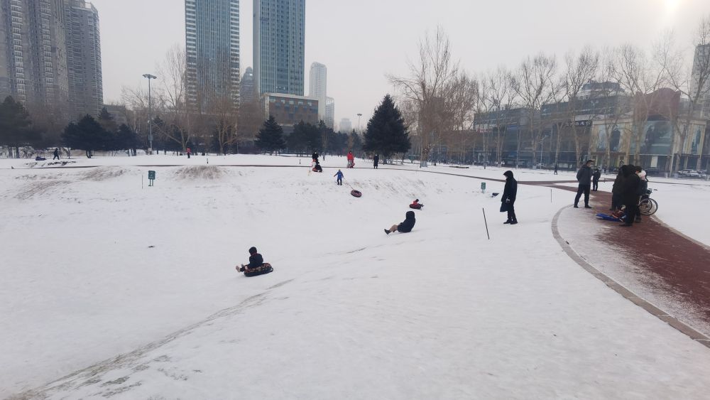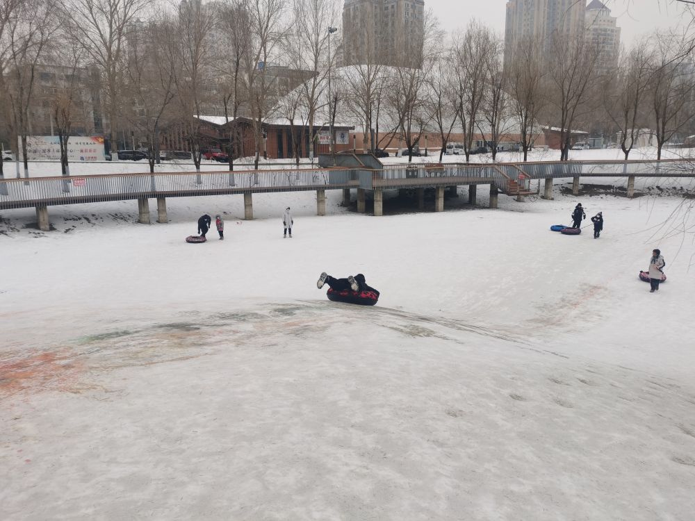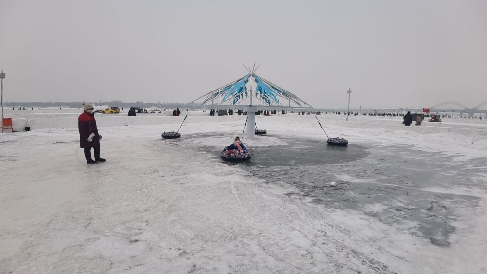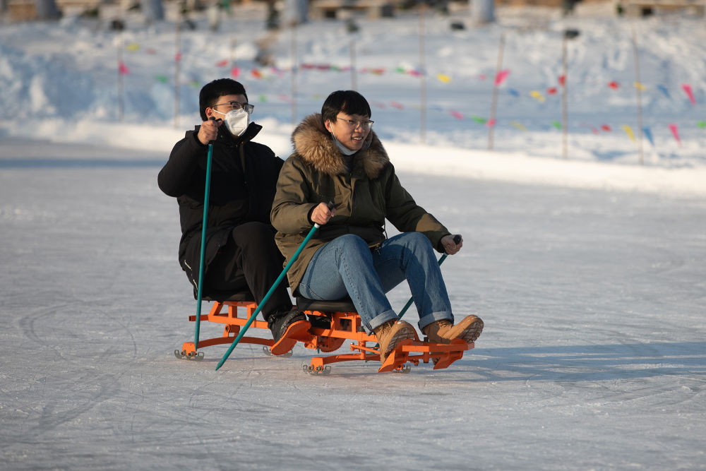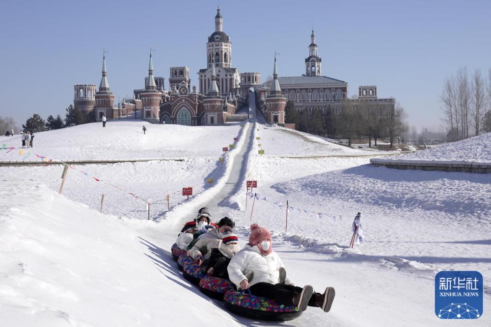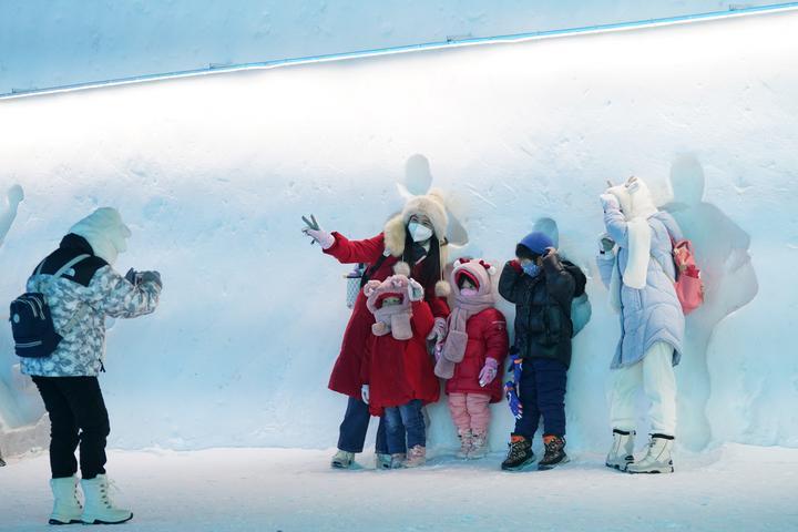 “好玩的地方太多了,冰上自行车、大小冰滑梯、冰雪城堡、雪圈,真有点应接不暇。”来自黑龙江省绥化市的游客朱仁,从长达423米的冰滑梯滑下来,全程六七十秒,体验了一把冰天雪地里的“速度与激情”。“虽然排队时间有点长,但在室内的等候大厅,冻不着,很贴心。”朱仁说。