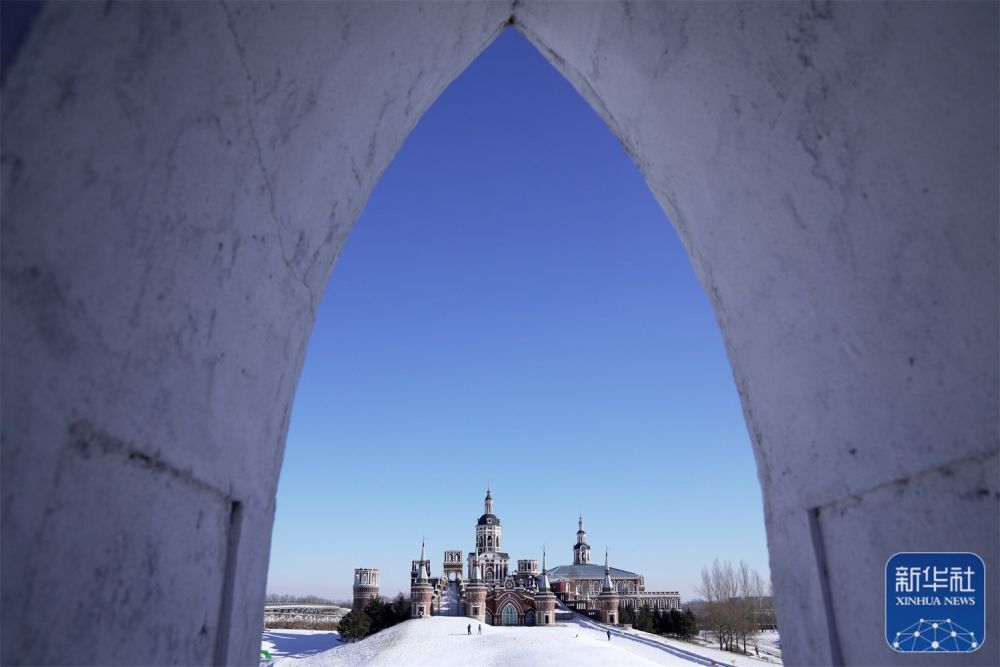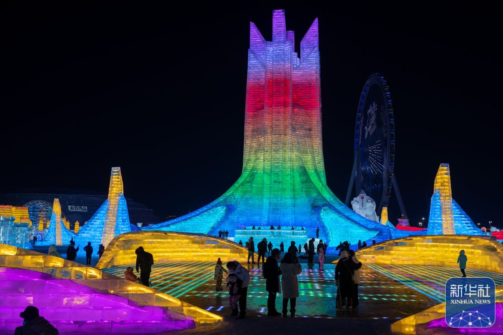 2021年12月31日,哈尔滨冰雪大世界主塔“圣火之巅”。新华社记者谢剑飞摄