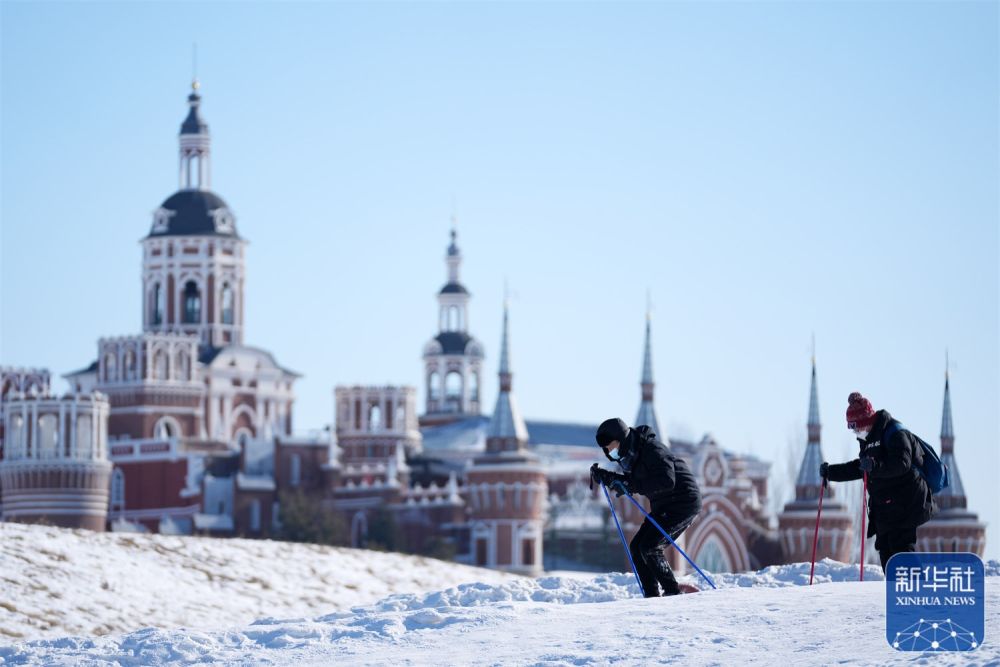 2022年12月31日,游客在第35届哈尔滨太阳岛国际雪雕艺术博览会园区内游玩。 新华社记者 张涛 摄