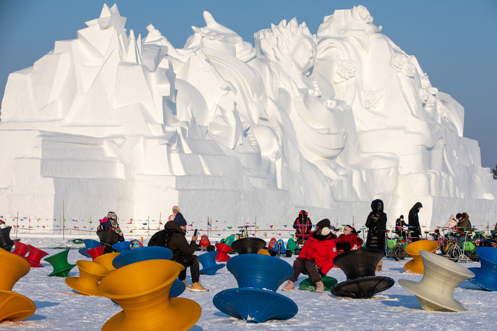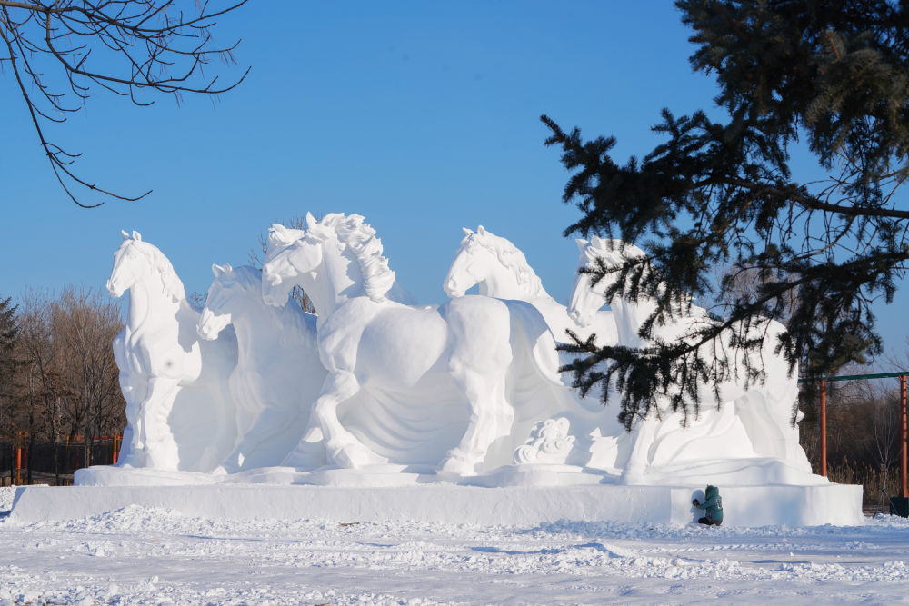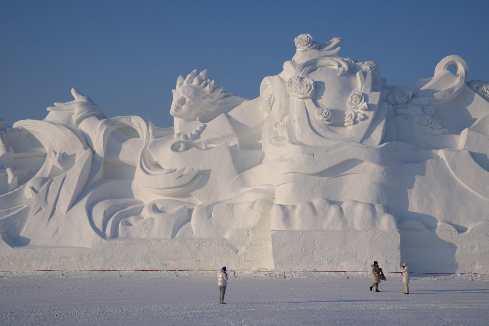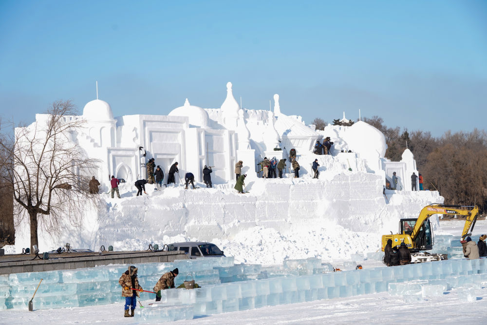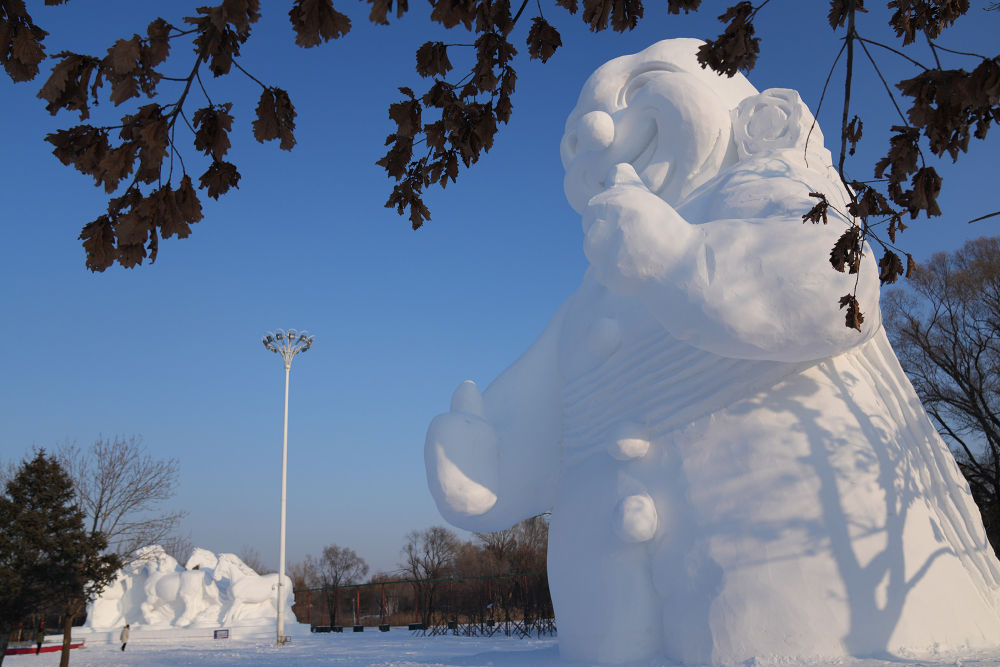 目前,第35届哈尔滨太阳岛国际雪雕艺术博览会园内各项工作有序推进。园区中所有大型雪塑作品的雕刻作业预计于12月下旬完成。