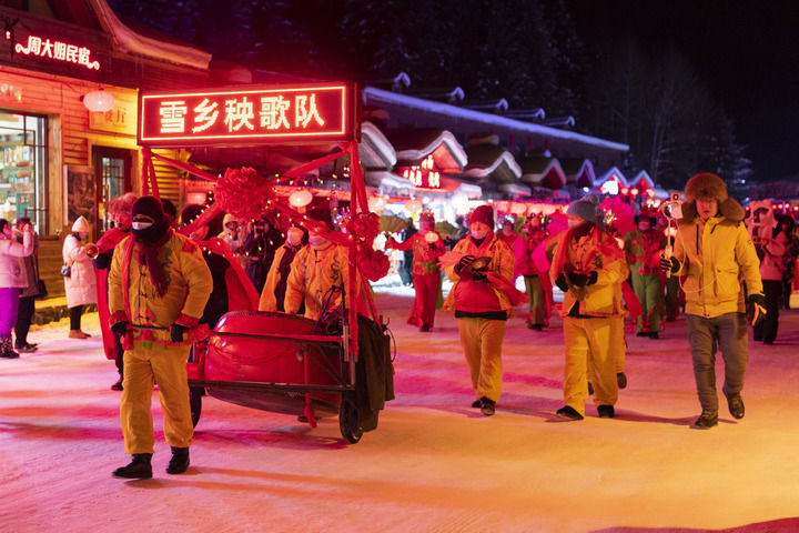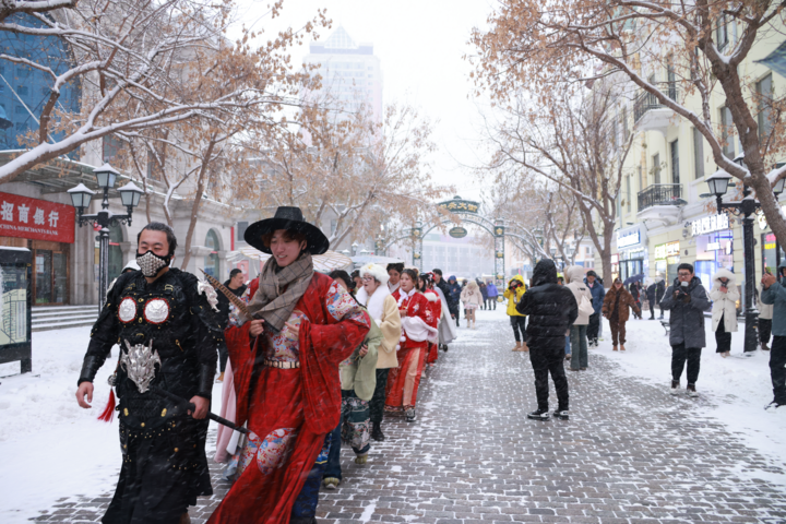 “冰城”哈尔滨:企鹅冰雪巡游引游客