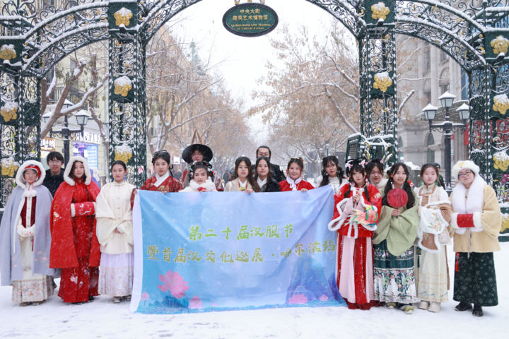 新华社客户端哈尔滨11月28日电(记者何山)日前,在哈尔滨的“百年老街”——中央大街上,一场雪中汉服巡游吸引了众多游客的目光。不同风格的建筑,不时飘落的细雪,映衬着或明艳或素雅的各式汉服,让人们感受哈尔滨这座城市东西方文化融合的魅力。