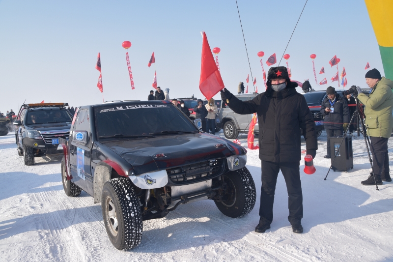 1月27日上午,汽车拉力赛决赛正式开始,经过一番角逐,几名获胜者登上领奖台。随后,10支秧歌队进行了预热表演,100名演员进行鼓舞表演,身着东北特色服饰,伴随恢宏音乐,招展迎风旗、擂响震天鼓,穿插舞龙贺岁、渔歌表演等。