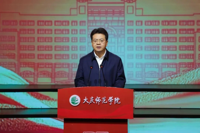 大庆市委书记李世峰代表大庆市委市政府向全校师生员工和广大校友表示祝贺。他强调,高校与城市是命运共同体,大庆市委市政府将持续为大庆师范学院的发展提供支持与保障。当前,大庆正加快建设 “三个城市”,希望庆师以建校60周年为新起点,优化学科布局,深化产教融合,为地方发展育人聚才。