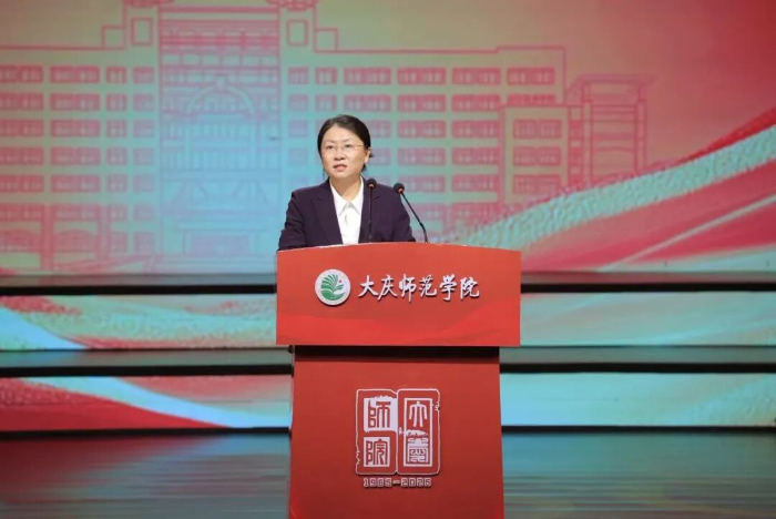 黑龙江省教育厅党组成员、副厅长程爽受黑龙江省教育厅党组委托致辞,她指出,师范教育是教育事业的“工作母机”,黑龙江省教育厅将一如既往支持大庆师范学院创新发展,在政策、资源等方面做好服务保障。同时,希望学校深化育人体系创新,对接东北全面振兴战略和龙江“4567”现代产业体系需求,更好地赋能区域高质量发展。