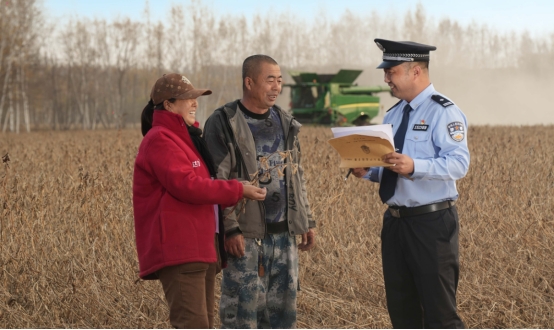 “群众忙秋收,服务不缺位。”各派出所组建“田间便民服务队”,携带身份证办理设备、急救药品等深入作业现场,为群众提供“一站式”服务。民警还发放法律宣传手册,普及秋收期间防盗、防火知识,及时化解矛盾纠纷。