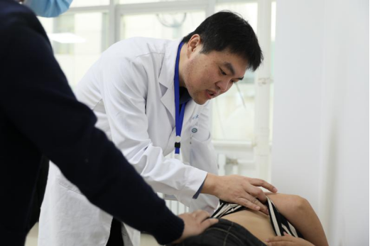 哈医大二院普外科副主任医师马东来为患者查体