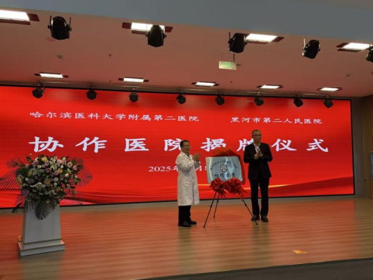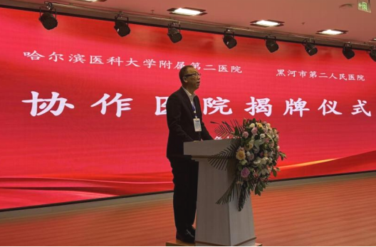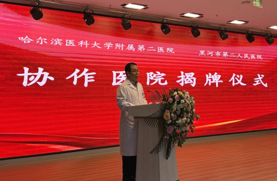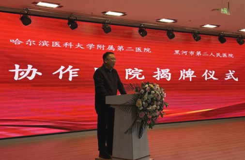 在揭牌仪式上,黑河市爱辉区人民政府副区长冯冠琳致辞,爱辉区卫生健康局党组书记、局长付廷山出席,黑河市第二人民医院党委副书记、院长王宏兴主持签约及揭牌仪式。