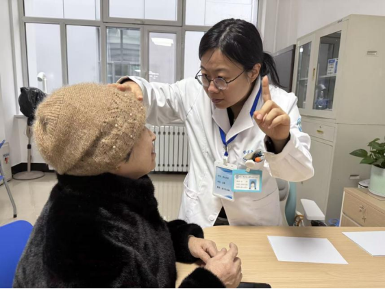 哈医大二院神经内科副主任医师岳辉为患者查体