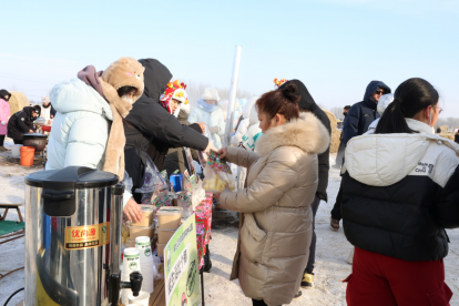 活动现场同步规划了16个专属展位,郊区优质农副产品、特色非遗手作、创意文创产品在此集中亮相。观赛游客在为球员呐喊助威之余,既能选购到地道的农家好货,又能近距离感受非遗文化,收藏独具地域特色的文创好物,实现“观赛+消费+文化体验”多重享受。活动全程吸纳本地村民参与赛事服务与展位运营,让村民在家门口实现就业增收,真正形成“运动惠民、产业增收”的良性循环,让冰雪经济的红利惠及更多群众。