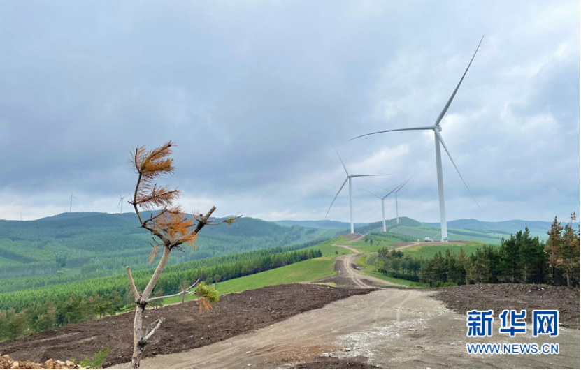 黑龙江华电哈尔滨依兰鸡冠山风电场部分风电机组。新华网 董云竹 摄