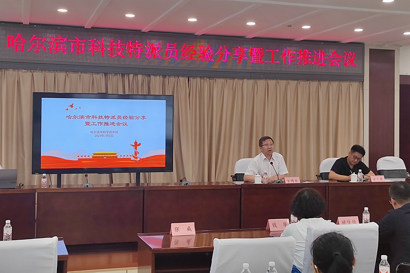 为深入推进主题教育,对标落实中央、黑龙江省委和哈尔滨市委乡村振兴工作的部署和要求,全力推动科技特派员制度落地见效,7月5日,哈尔滨市科技局在双城区召开科技特派员经验分享暨工作推进会,会议通过科技特派团实地踏查富硒果蔬基地、帮扶经验交流等形式,总结前期工作开展情况,部署下一阶段重点工作。哈尔滨市科技局局长宋博岩、副局长关少男及科技特派员派出单位相关工作负责人参会。