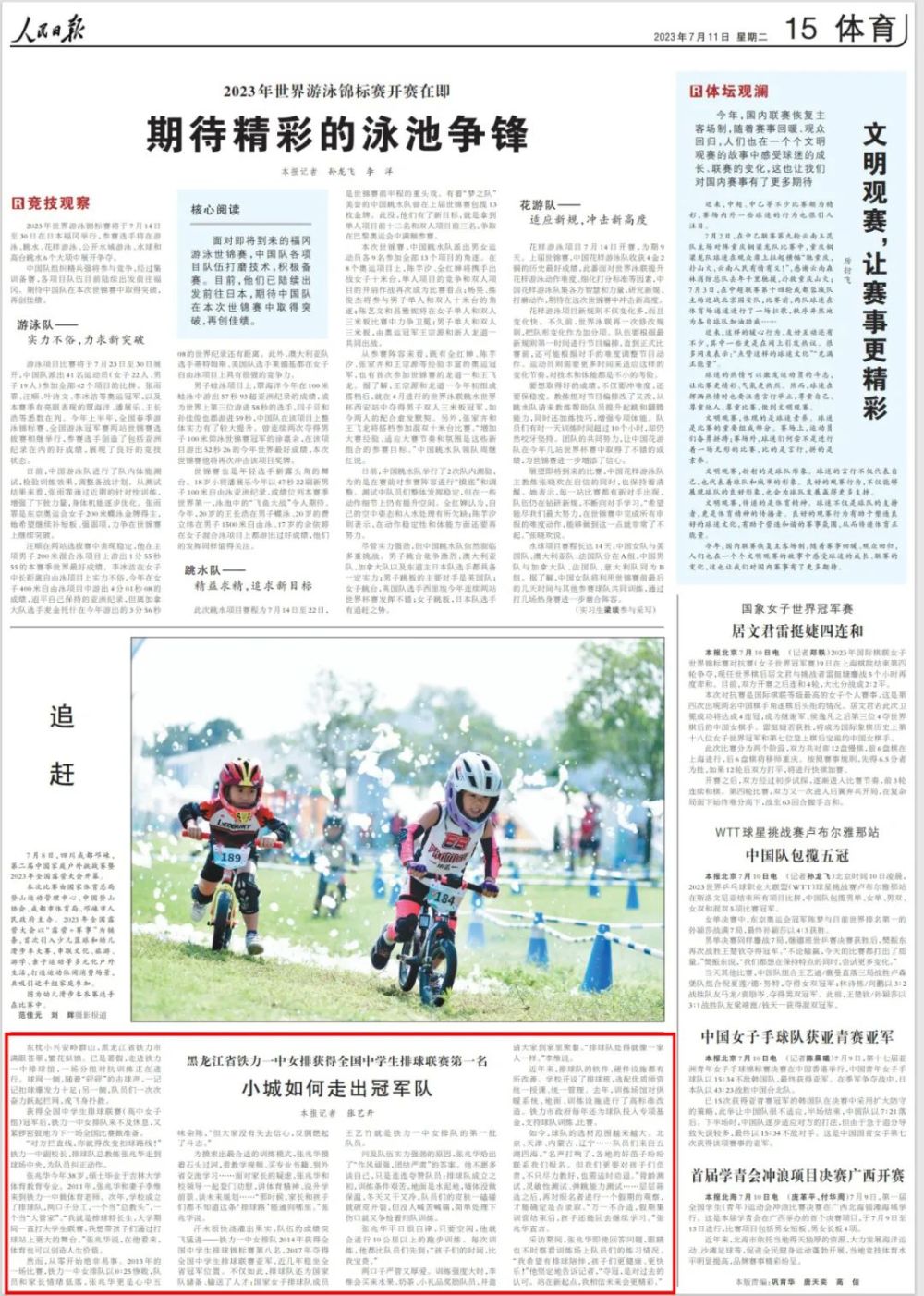 2023年5月6日晚,在第十九届中国中学生排球联赛(高中组)决赛中,黑龙江省铁力市第一中学校女子排球队以3:0的大比分战胜对手勇夺高中女子组冠军。7月11日,《人民日报》以“小城如何走出冠军队”为题关注黑龙江省铁力市第一中学校,小编带您看具体报道↓↓↓