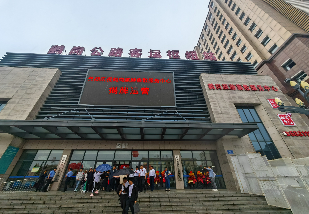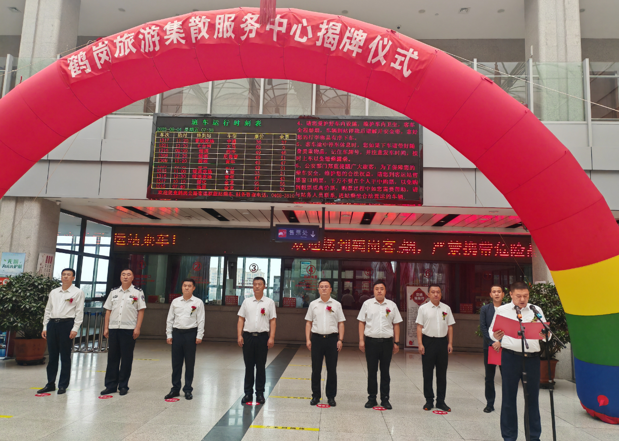 8月4日上午,鹤岗旅游集散服务中心揭牌仪式在鹤岗公路客运枢纽站举行。鹤岗市副市长齐东亮,市文体广电和旅游局、市交通运输局、市林草局、市水务局、市公安局、市城投集团领导,A级旅游景区和旅行社代表,旅行团游客等共约200人参加活动。