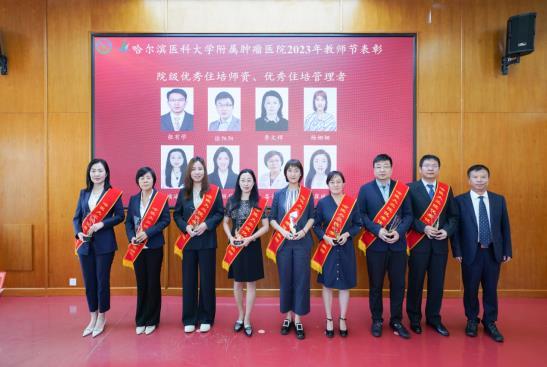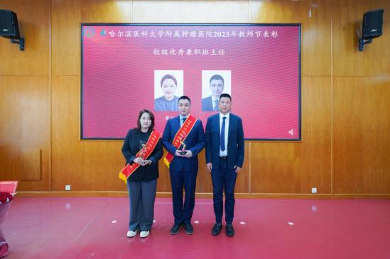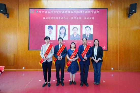 哈尔滨医科大学第三临床医学院党委副书记袁贵生宣读了2023年教师节表彰名单。大会表彰了在过去一年中取得优异成绩和做出突出贡献的先进个人和集体:国家级一流本科课程负责人,学生学科竞赛省级获奖指导教师,校级模范教师、优秀教师、师德师风先进个人和集体、优秀兼职班主任、教学比赛获奖教师,院级先进教研室、优秀专业基、优秀教育管理干部、优秀教师、学生最喜爱的教师、优秀模拟教学教师、优秀住培师资和管理者。