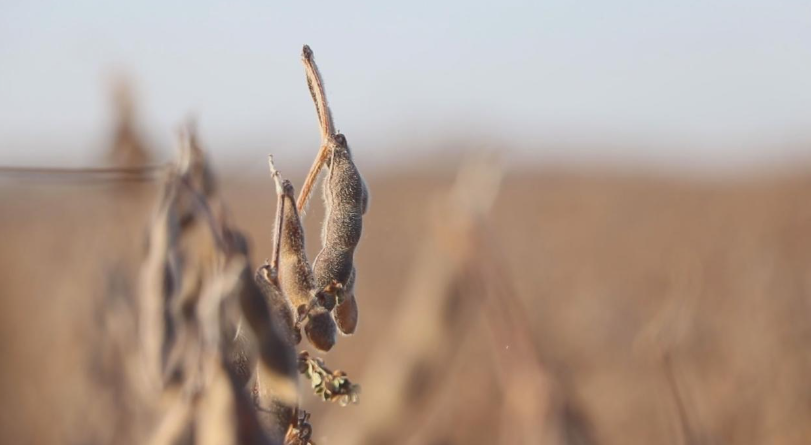在齐腰高的豆田里,一簇簇饱满密实的豆荚色泽金黄,连成片的豆叶在风中沙沙作响。机声隆隆,在农机手的操作下,一垅垅大豆被迅速卷进收割机,不出半个小时,就可以完成一次切割、输送、脱粒、放粮等作业。