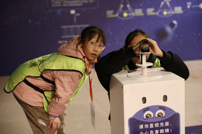 参加“童心港湾”研学公益行的孩子们在省科技馆里探索科学奥秘