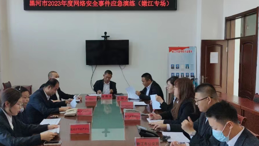 近日,黑龙江省嫩江市委网信办组织开展黑河市2023年度网络安全事件应急演练(嫩江专场)。