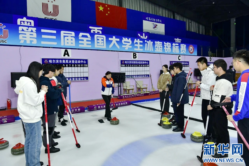 探身瞄准,果断发力,兴奋呐喊……最能感受到同学们热情的就是前国家女子冰壶队队长、哈工大体育部教师姜懿伦。她是国际级运动健将,全国冰壶冠军赛、锦标赛、冬运会冠军获得者。