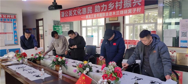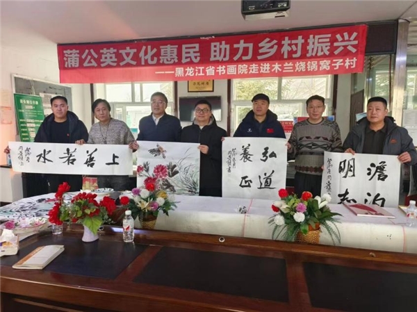 对于黑龙江省书画院党委委员、副院长荆桂秋,书法创研部副主任胡良伟,美术创研部副主任张海东,书法创研部创作员闫恩双等四位书画名家的到来,哈尔滨市木兰县县委常委、宣传部长郝东生和驻村第一书记冯海晨,致以衷心感谢和热烈欢迎,热切希望黑龙江省书画院的“蒲公英文化惠民,助力乡村振兴”活动能更广泛持久的开展下去,早日让这股书香之气,从村向镇,乃至全县沁展,好为木兰县乡村文化振兴,添加更书情画意的妙笔效应。