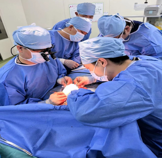 在宋凯镔教授团队与麻醉团队及手术室护理团队等医护人员密切配合下,手术顺利完成。为患者切除原发灶的同时修复了患者的下颌骨及口底的缺损。
