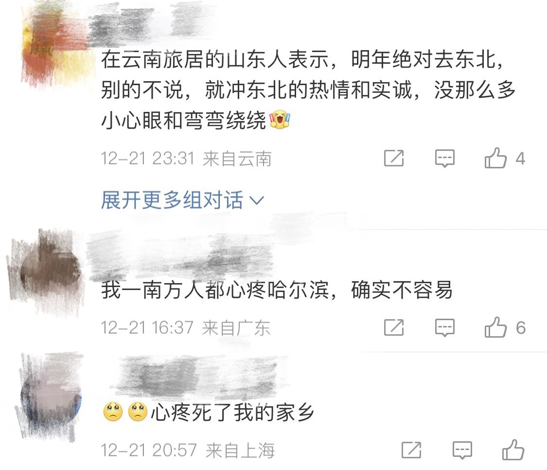 “我觉得这波退票操作,给哈尔滨大圈粉。我身边已经有很多人想去哈尔滨了。走,去哈尔滨看雪去,泡澡堂子、搓个澡、打雪仗。”