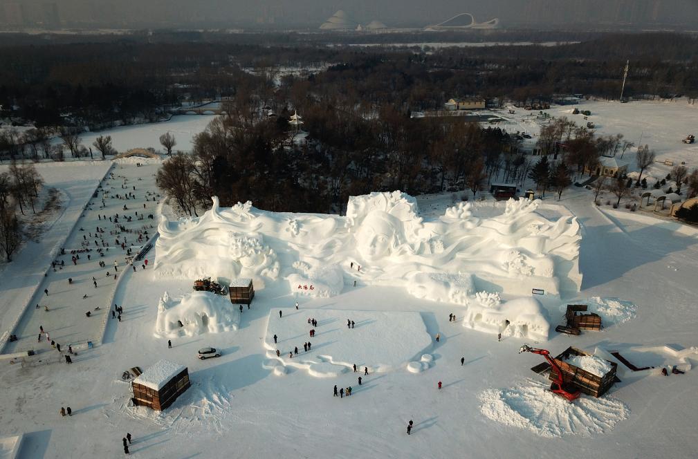 近日,第36届哈尔滨太阳岛雪博会主塑《雪绒花》落成。该巨型雪雕长100米、宽25米、高30米,用雪量3.5万立方米,由80余名雪雕匠人历时10余天雕刻完成。