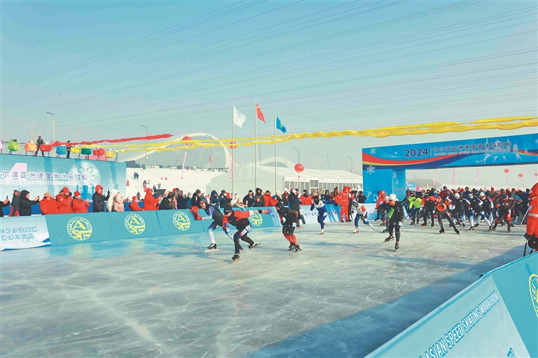 近日,2024年哈尔滨亚洲速度滑冰马拉松在位于哈尔滨新区的亚洲最大户外冰上运动中心举行。