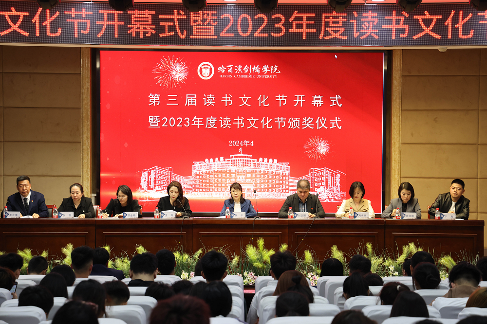 4月22日,哈尔滨剑桥学院第三届校园读书文化节开幕式暨2023读书文化节颁奖仪式举行,学校副校长樊千、团委书记王莉、各二级学院党总支书记、团总支书记及学生代表300余人参加活动。