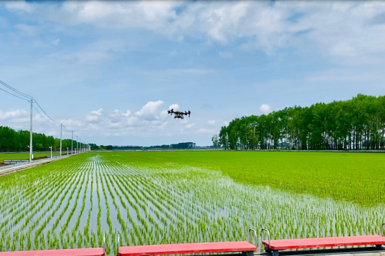 眼下正值喷洒水稻返青肥的关键时期,在北大荒集团梧桐河农场有限公司各管理区水稻田里,一架架无人机在技术人员的操控下稳稳起飞,在水稻田上空穿梭,精准喷洒返青肥及防虫药剂,不仅降低了人工成本,而且提高了作业效率。