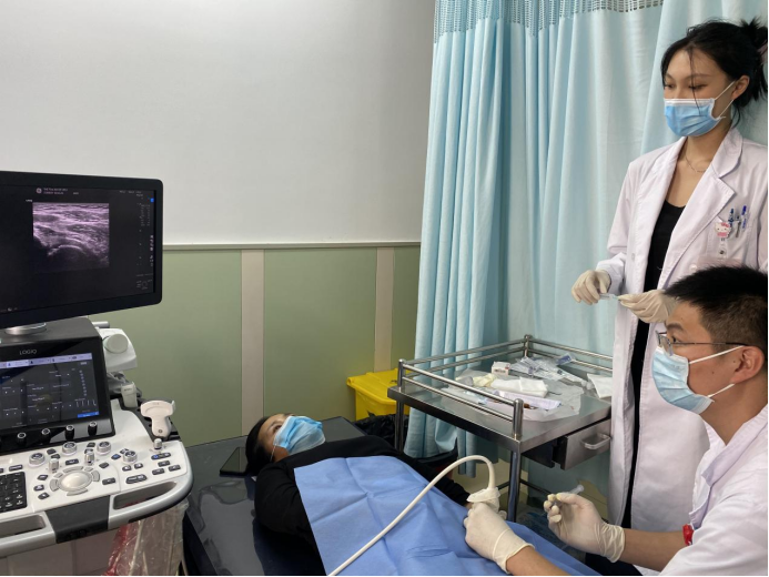 今年52岁的市民李女士一直在练习瑜伽,近一个月出现了右侧髋关节疼痛且症状比较明显,传统理疗和贴敷膏药也不见好转,来到哈医大一院群力院区就诊。哈医大一院骨科主任王文波教授结合查体及影像学检查,诊断患者为髋关节运动损伤,决定采取富血小板血浆(PRP)注射技术进行治疗。完成相关化验后,哈医大一院群力院区输血科主任曹荣祎安排专人为患者采血、制备富血小板血浆(PRP),并在超声科医生姜岩的协助下,完成超声引导下的髋关节注射。注射后,患者感觉良好,髋关节疼痛明显减轻。