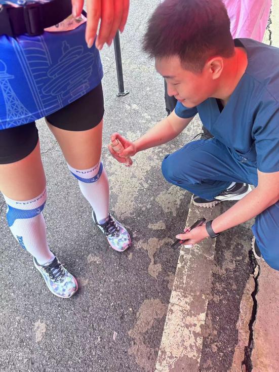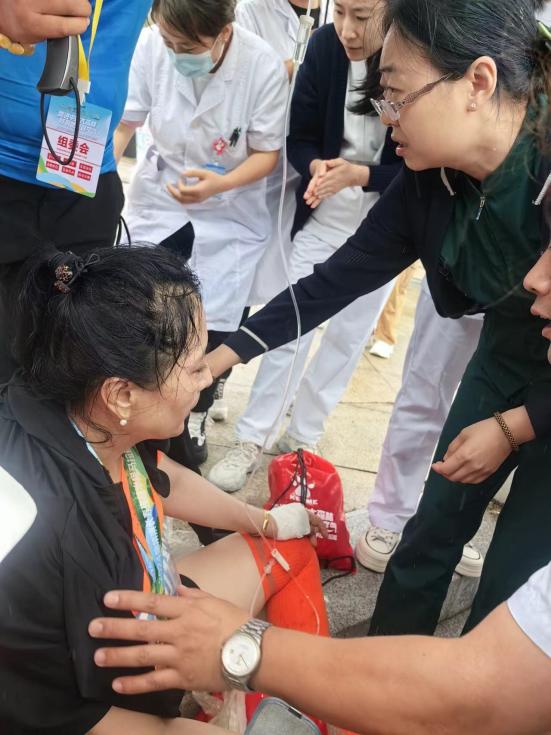 赛事期间,全体医疗保障人员通力配合,密切观察赛场上每一位运动员的身体状况,主动提供医疗服务,对参赛选手进行及时的医疗救治,为出现肌肉酸痛、拉伤的选手提供冷敷、喷剂治疗,为外伤患者提供简易包扎,还向选手们提供必要的医疗咨询和指导。全力做好现场医疗救治和应急处置工作,最大限度提升现场处置专业化水平,切实做到第一时间发现、第一时间报告、第一时间救治,最大程度地减少人员伤亡和健康危害。