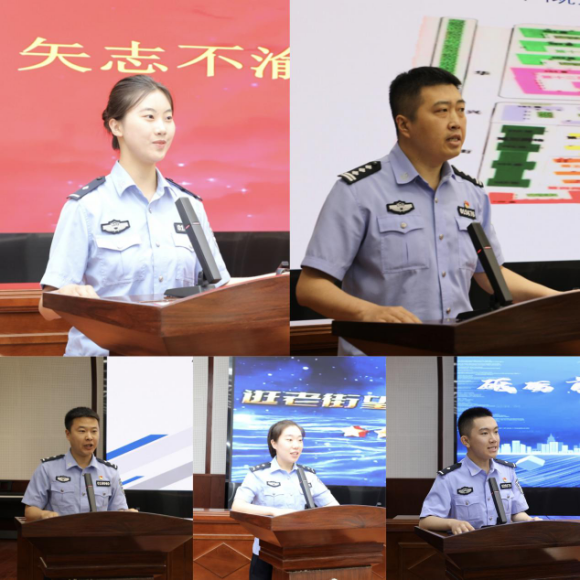 刑事技术大队柴霁恒表达了牢记前辈嘱托,以奉献书写忠诚、用奋斗点亮初心、用服务践行誓言,笃行不怠向未来的坚定决心;康安街派出所梁亮讲述了自己作为河柏社区民警做实人口管理、做细民生小事、做精矛盾调解的平凡事迹;刑侦二大队大案中队李立帅以成长为主线讲述了自己在刑侦战线上的经历和做法,用实际行动书写铁血忠诚的故事;中央大街巡逻队赵一然通过两部分内容分享了中央大街巡逻队以打造“人民的平安卫士”为目标,默默守护、愿做平安底色的巡逻日常;爱建路派出所付浩洋讲述了爱建路派出所两年来的变化,以及在规范化建设、热情服务群众、涵养警营文化等方面取得的成绩。