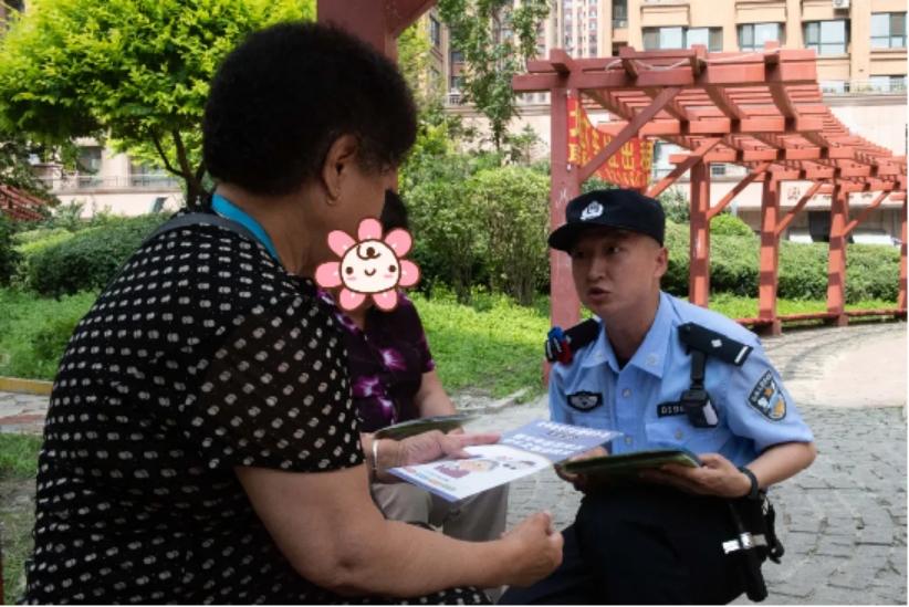 民警在社区活动中心、小区庭院等居民集中场所,通过现场宣讲、发放宣传单、张贴海报等方式,为群众讲解生活中常见的电信网络诈骗类型。针对老年群体,民警“敲门入户”,点对点、面对面地将反诈知识送到老人家中。同时,民警用身边发生的典型案例,重点讲解以提供“养老服务”、销售“养老产品”等名义实施诈骗、非法集资、制售伪劣商品和生产、销售、提供假药、劣药等侵害老年人财产权益的各类违法犯罪活动,普及相关法律知识,提醒群众不要轻信来历不明的电话、短信,不要向陌生人透露自己和家人的身份证、银行账号等信息。如果遇到可疑情况,第一时间拨打报警电话,防止不必要的财产损失。