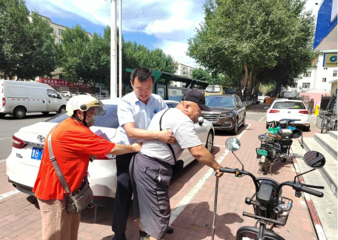 7月24日中午,徐春花老人急匆匆地走进建设银行齐齐哈尔铁道支行,经客户经理张宇询问得知,徐春花与老伴张福山因购房需要打印征信报告。由于张福山腿部残疾,导致行动不便,虽然驾驶残疾人电动车来到了银行门口,却难以进一步行动。张宇迅速与大堂经理鲍丛春、客服经理王求圣联手为老人开通了一条爱心服务通道。鲍丛春与王求圣合力抱起体重近两百斤的张福山,用“劳动者港湾”配备的轮椅将张福山推至智慧柜员机前,耐心指导他办完了业务。
