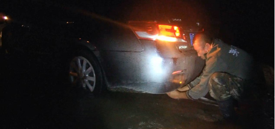 当日18时许,穆棱市公安局兴源镇派出所接到报警,在兴源镇岩松村出村口附近有人驾车落水,两人被困车中。接到报警后,兴源镇派出所所长王吉峰火速组织警力赶至现场,同时联系岩松村村委会一起开展救援。民警发现,河流底部松软,水流较急,车轮陷入水中无法动弹。民警立即到附近村民家里借来农用拖拉机和拖车绳,用拖拉机将车辆从河中拖出,车内二人被成功救出。