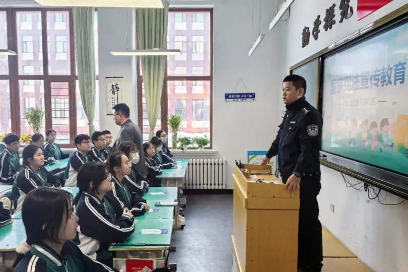 今年12月4日是第十一个国家宪法日,为弘扬宪法精神,筑牢法治校园根基,哈尔滨市公安局香坊分局巡逻办、朝阳派出所等单位组成宣讲小分队,走进哈尔滨市剑桥第三中学校,开展“国家宪法日”主题普法宣传活动。