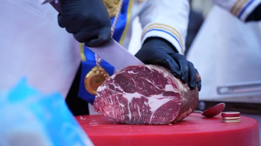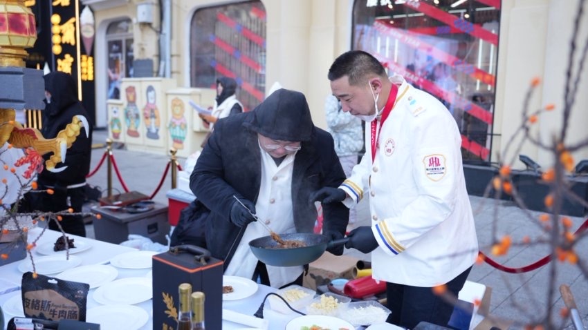 活动中,黑龙江名厨团队现场烹制安格斯雪花牛肉,美食博主纷纷给予好评。作为北纬49°的天然牧场、黄金养牛地带的“中国安格斯肉牛之乡”,黑河市孙吴县拥有全球“最佳养牛带”之一的独特优势,每年近150天的极寒天气,让牛本身产生独有的氨基酸和微量元素,身体健壮,造就了品质上乘、口感绝佳的牛肉。