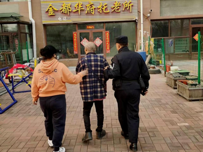 4月13日早晨,会宁派出所接到群众报警求助,某养老院一名老大爷起早出门遛弯一直未归。会宁派出所立即调动巡逻民警及社区网格员进行寻找,经过半个小时的努力,派出所巡逻车组民警李佳鹏在某小区院内找到老大爷,并将老人安全送回养老院。
