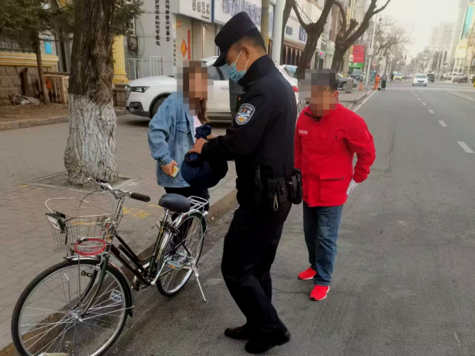 4月12日下午,金城派出所巡逻车组民警李澎辅警何沛鸿巡逻至牌路大街七中门前时,救助一对骑自行车摔倒的母女。民警仔细查看两人伤势,确认无大碍后,用警车将老母亲送回家中。