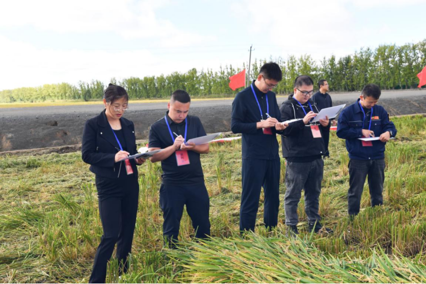 水稻割晒劳动竞赛现场打分。(郑云鹏摄)