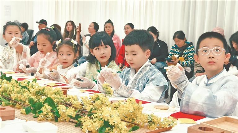 6日,哈尔滨市南岗博物馆举办了“悦南岗 趣中秋”中秋节民俗文化体验活动。小观众们自己动手制作月饼,并把香甜的月饼与家人分享。记者 蔡韬摄