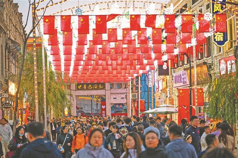 6日,哈尔滨市道外区中华巴洛克历史文化街区迎来大批游客和市民。街区中秋节日氛围浓厚,人们在这度过了一个别样的中秋佳节。记者 郭俊峰摄