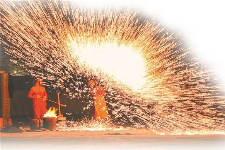国庆中秋假期期间,哈尔滨冰雪大世界每晚进行的国家级非遗打铁花表演成为园区黑夜里的“硬核浪漫”。记者 郭俊峰摄