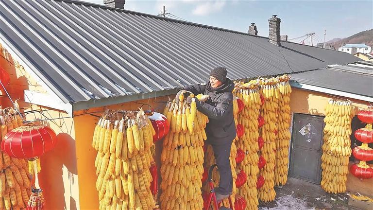 在横道河子镇,一座玉米装饰的房子已经有了雏形,这个网红打卡点的老板李明正往墙上挂大红灯笼。“马上冬季要来了,我把店里做了装饰,挂上苞米棒和大红灯笼,让南方小伙伴看到我们东北的民俗文化和东北人的热情。”李明说。