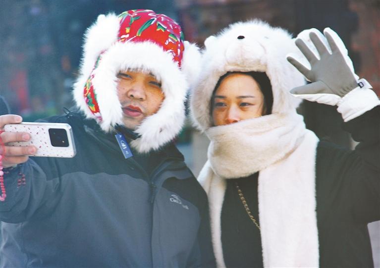 进入冬季,哈尔滨市气温持续下降,外地游客的数量却在不断增多。在道里区尚志大街附近的一处摊点,多位游客在购买棉帽。包括熊猫、小狗、小鹿等在内的卡通动物造型棉帽受到大家的青睐。(记者 苏强摄)